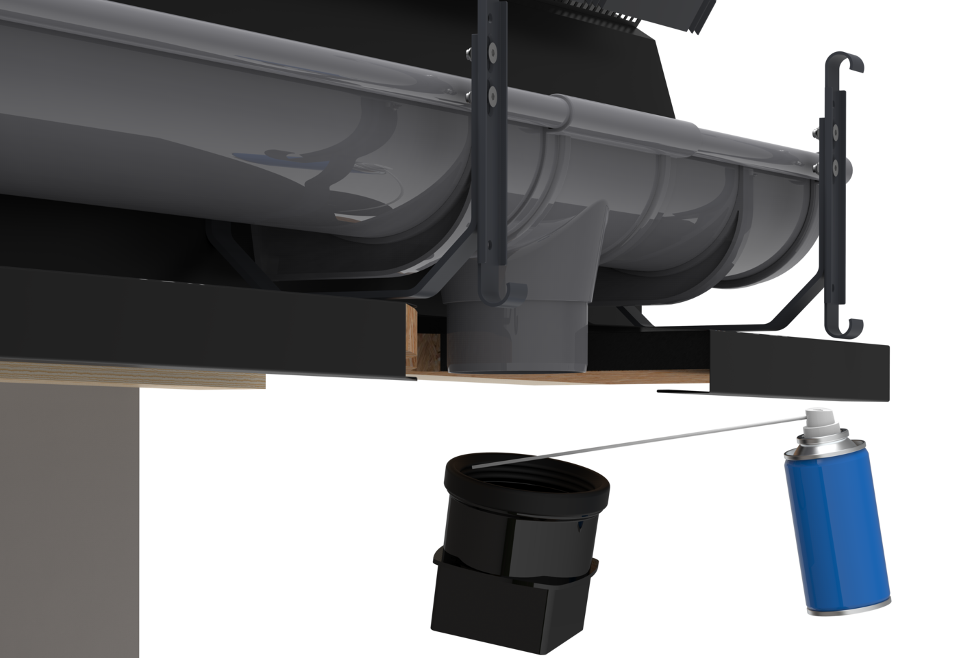 Перед встановленням днища збризніть на нього Gasket SPRAY. Для додаткової герметизації рекомендується використовувати ущільнювальний силікон на стику дна і жолоба.