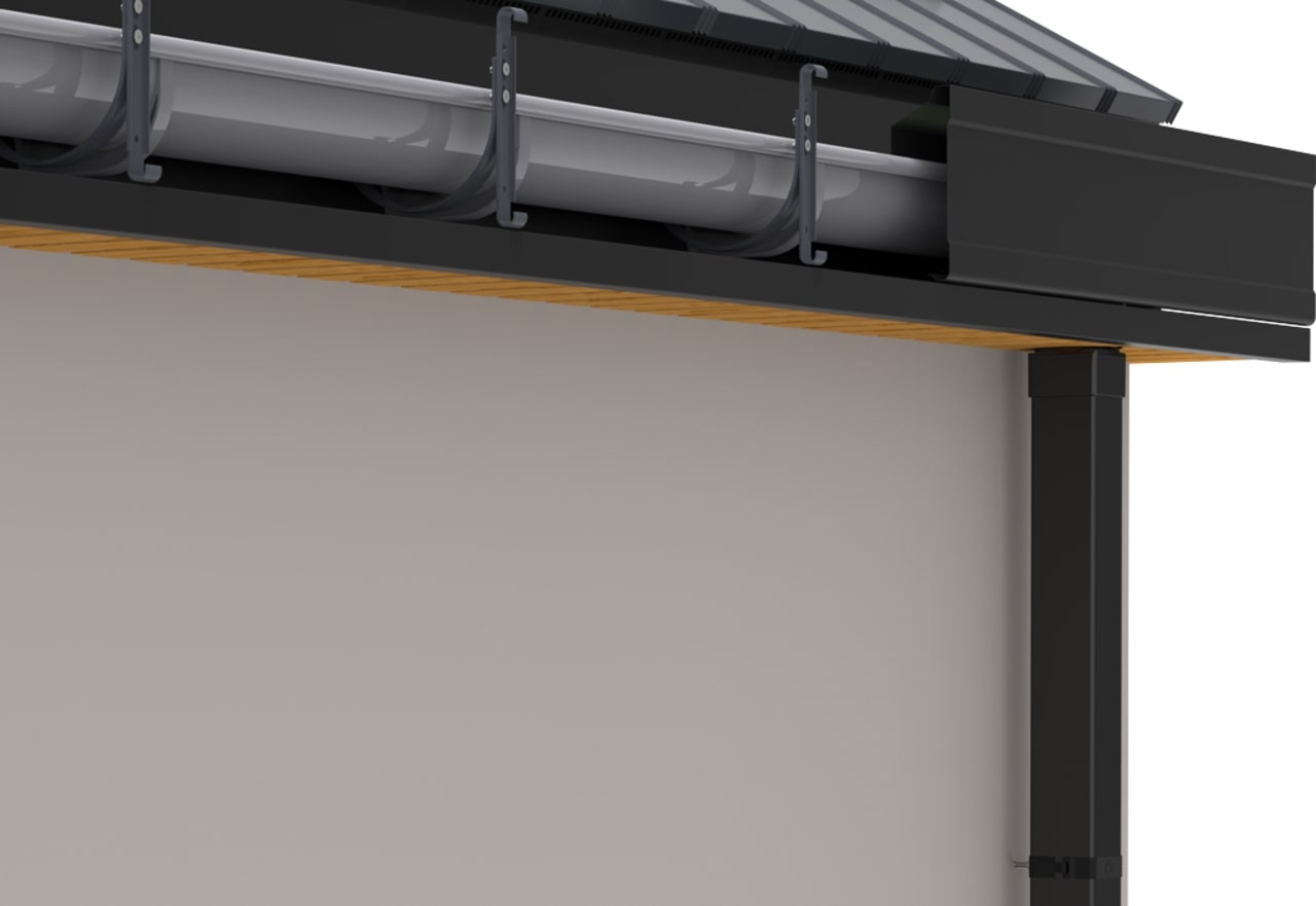 Прихована водостічна система KROP розроблена таким чином, що після монтажу кришки на гаки, схил водостоку ПВХ 130, який знаходиться всередині системи, був прихований.