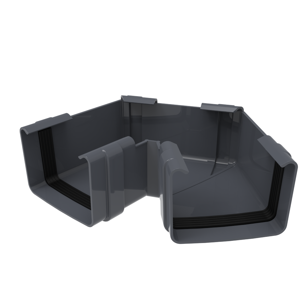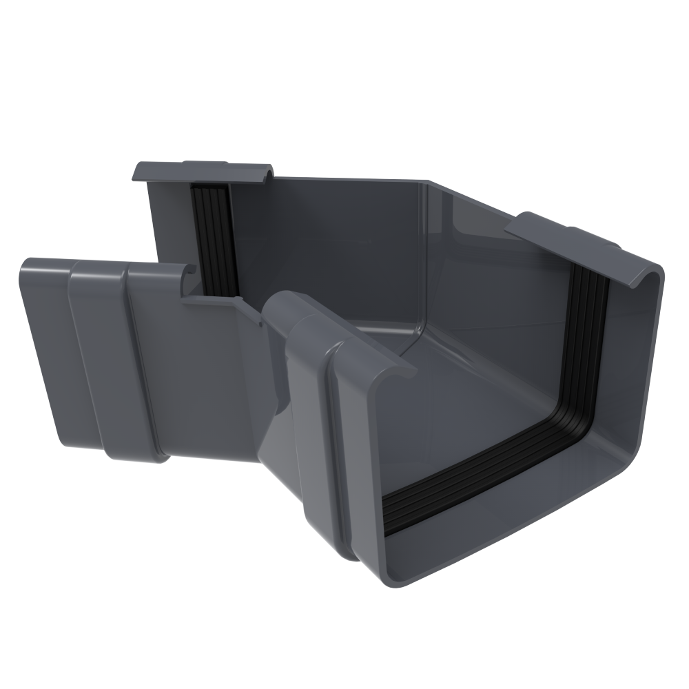 Обеспечивает плотное соединение двух квадратных желобов, установленных под углом 90 градусов. Благодаря своей универсальности он используется во внутренних и внешних углах здания.