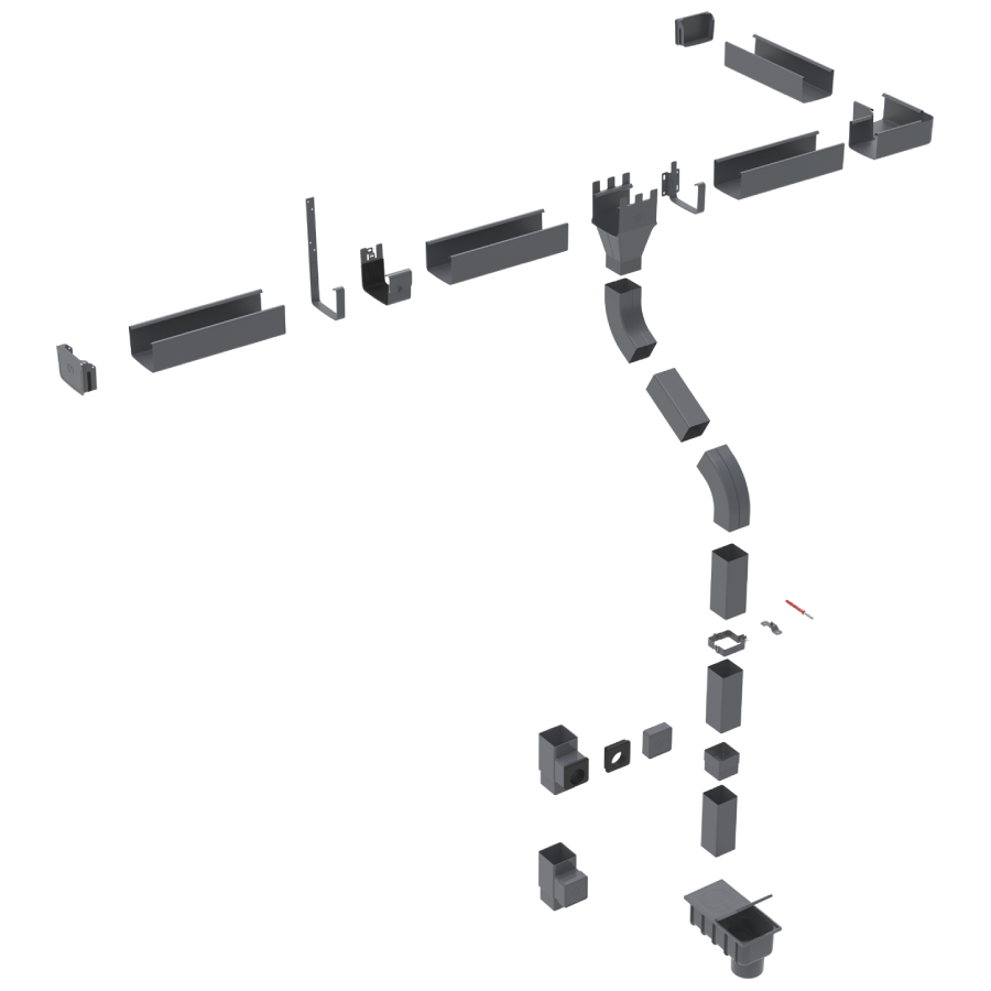 Симметричные фасонные элементы желобов обеспечивают интуитивно понятный монтаж системы.